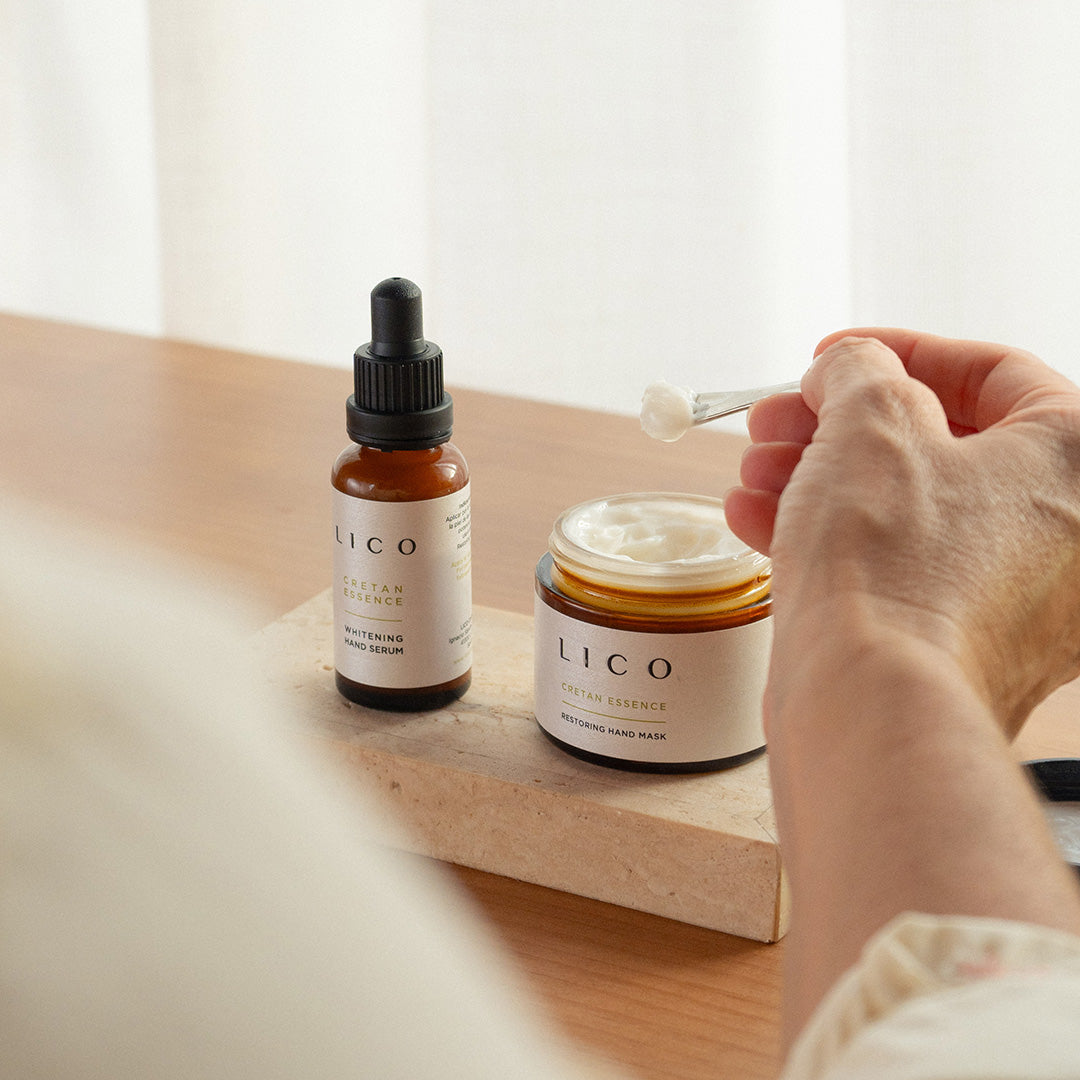 A cuidadosa combinação dos seus princípios ativos desenvolvidos com ingredientes naturais da ilha de Creta fazem deste tratamento a solução ideal para despigmentar e rejuvenescer as mãos.